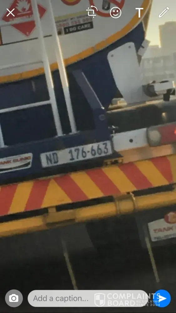 The driver of the attached Road tanker was travelling on the southern freeway (Kwazulu Natal, Durban)heading north at about 07:00 this morning (14/04/2021) and suddenly crossed over a solid line almost causing an accident also possible explosion.