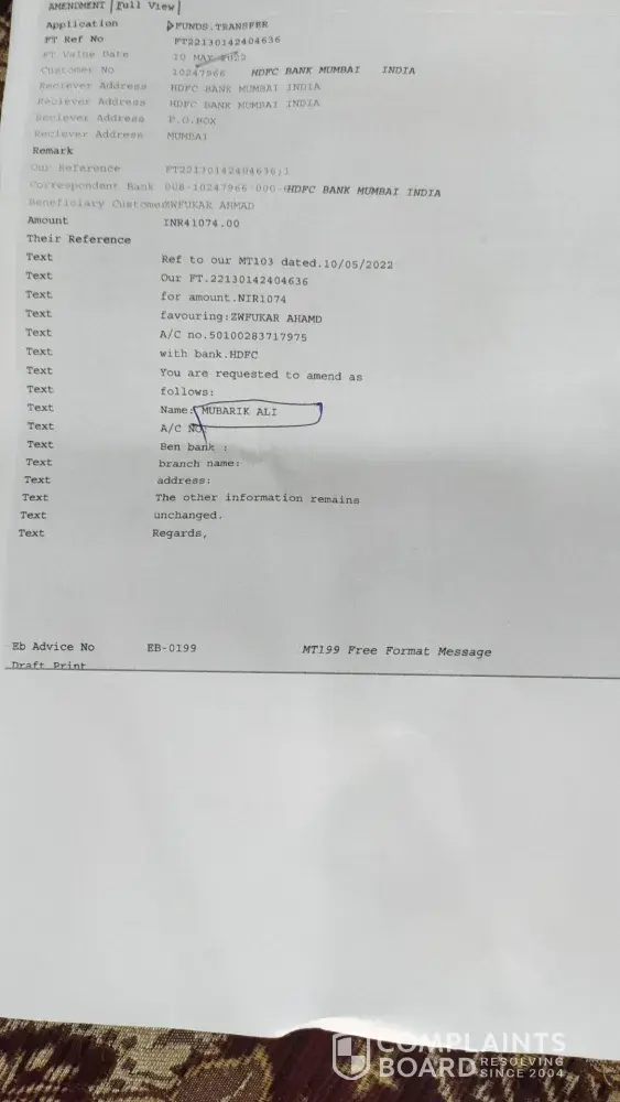 The payment has been reached in beneficiary account, but the bank authorities not ready to pay, the are saying that the remitter's bank should order to us to pay. When I go to branch many time to say like this, but the bank authorities not ready to listen any thing and saying we have send my money to beneficiary account already and we will not do anything.