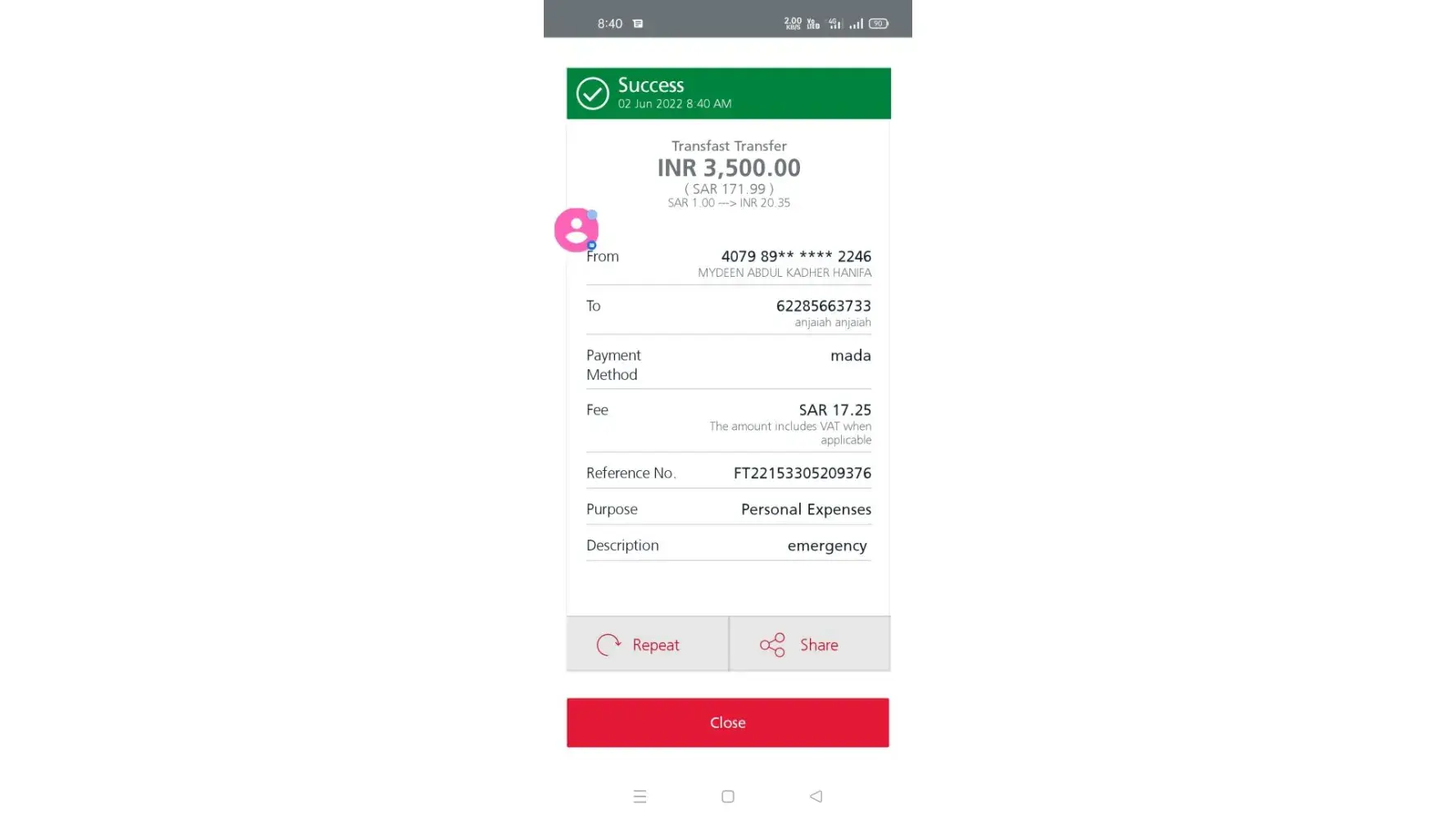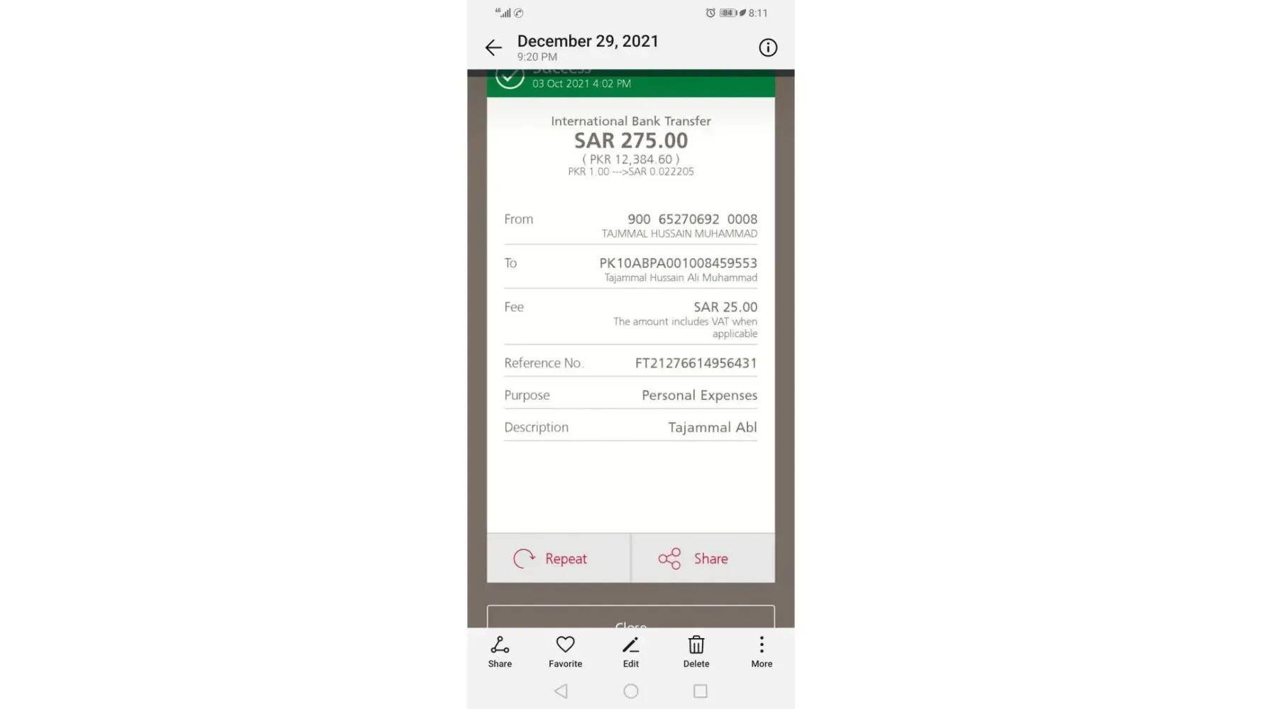 I was transferred Sar-1126.59 to A beneficiary that name is
