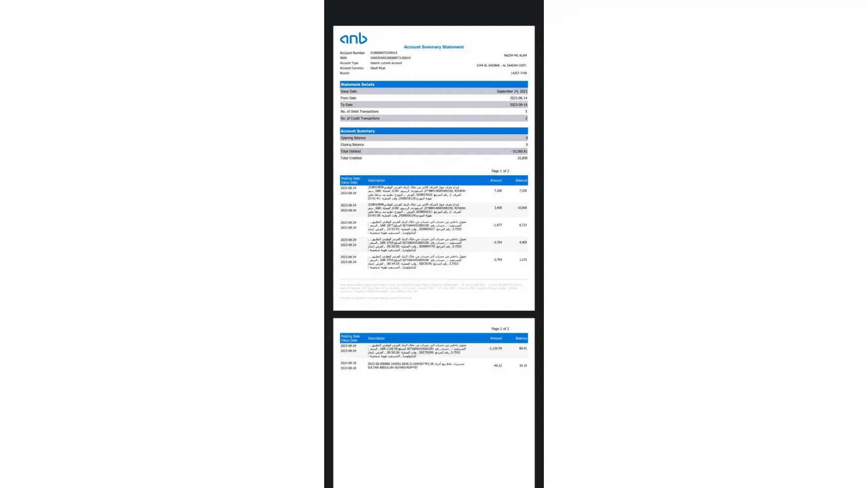 I am giving you my account statements.