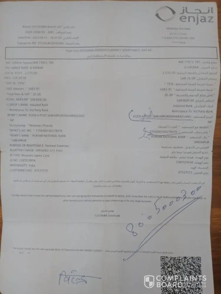 The service of Enjaj is not transparent and some of the customer care agents do not respond well on the issue. I have failed to understand them that how its important to send the money to my family back in India.