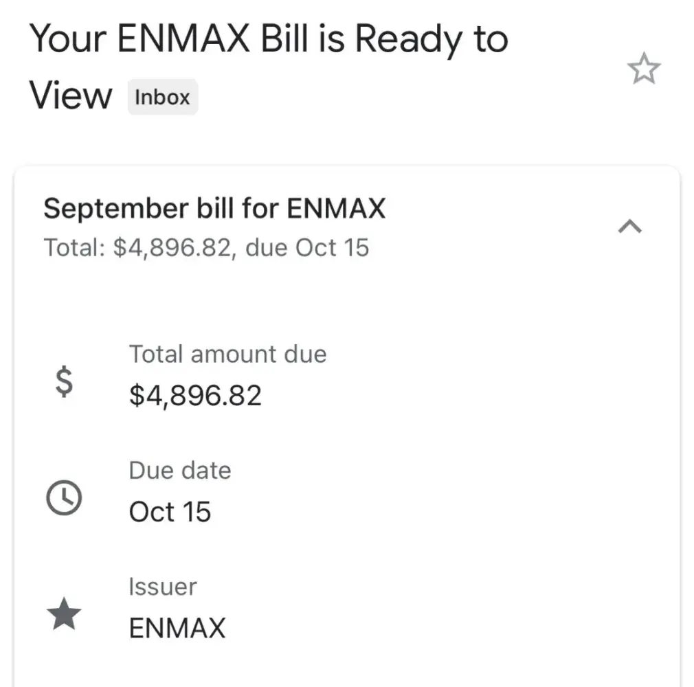 I live j in n a small one bedroom apartment, I’ve been here exactly one month and I signed up for Enmax to be hooked up for my first day. Everything seemed fine, until I got my first bill of FIVE THOUSAND DOLLARS!