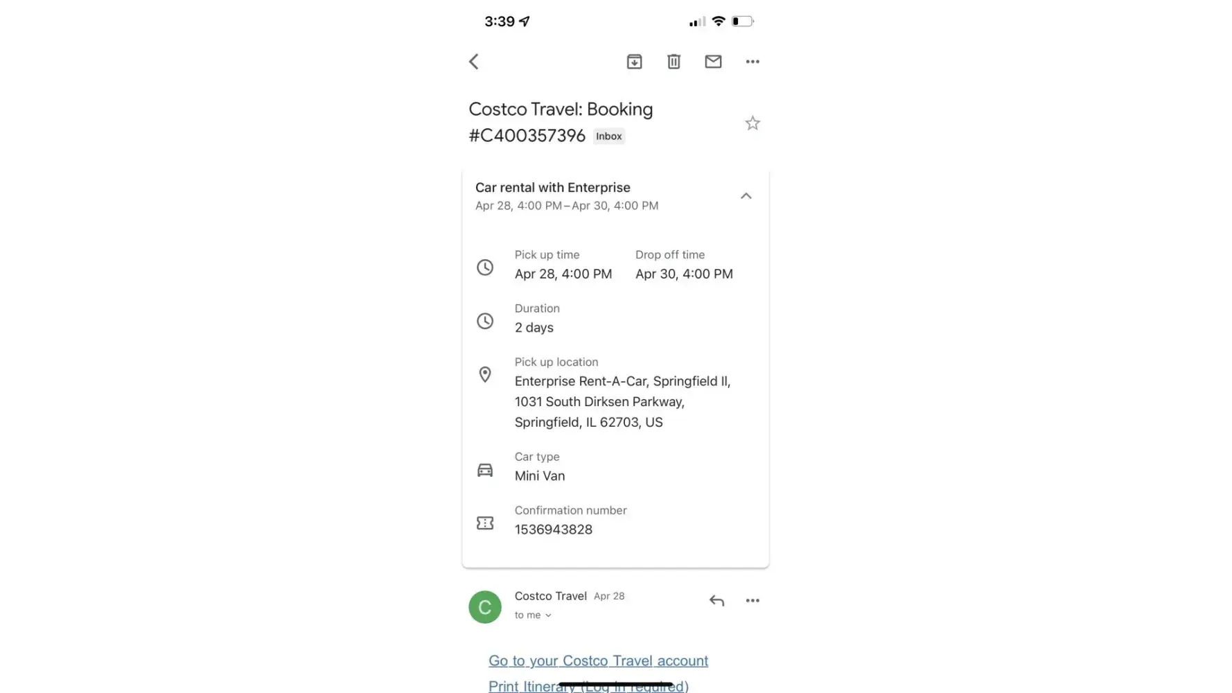Desired outcome: Need copies of return dates and also reservations as well as receipts.