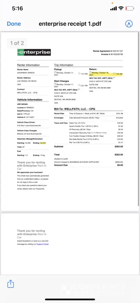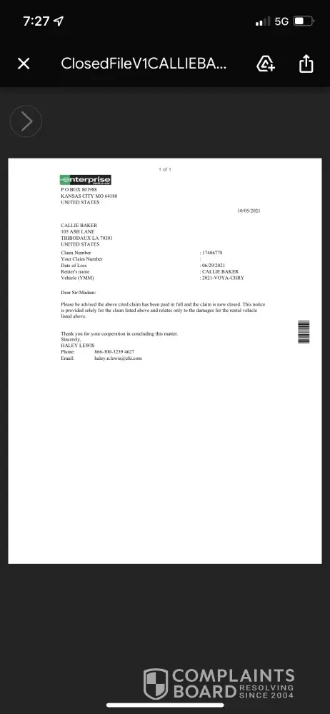 No one from enterprise has ever contacted me regarding this. I even called corporate office and they did nothing.