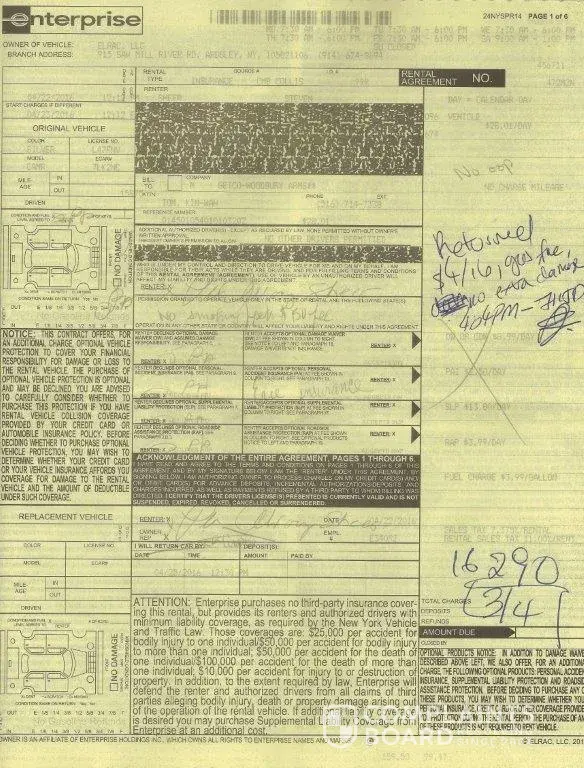 When departing the Enterprise car rental, we had requested a blank invoice to prove that we returned the car and that there was no out of pocket costs (Geico to cover all costs). The Enterprise Rep Christine mentioned that Geico did not pay them rental fee for 2 days and could not produce an invoice or proof of car return. I requested documentation in writing stating we returned the car with ¾ tank of fuel and there were no damages to the car. We had asked for the rental cars’ history to see if these damages have been reported prior to our rental. Christine did not provide any information, but John signed off on our contract that the car was returned “No extra damage”. Attached is a copy of this statement with John’s signature.
