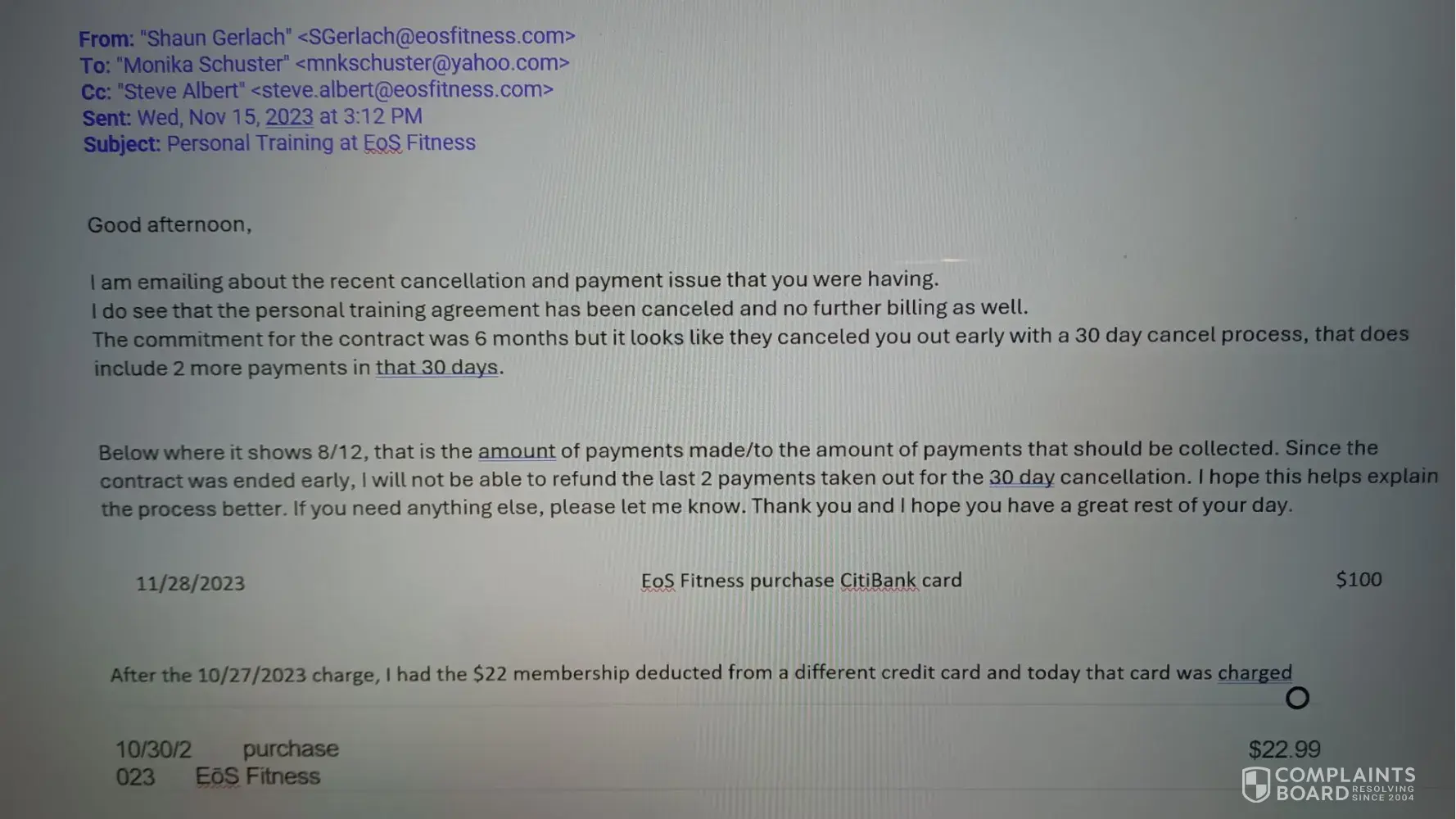 EOS Fitness complaints: history and resolution overview