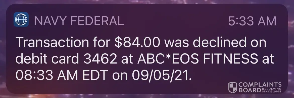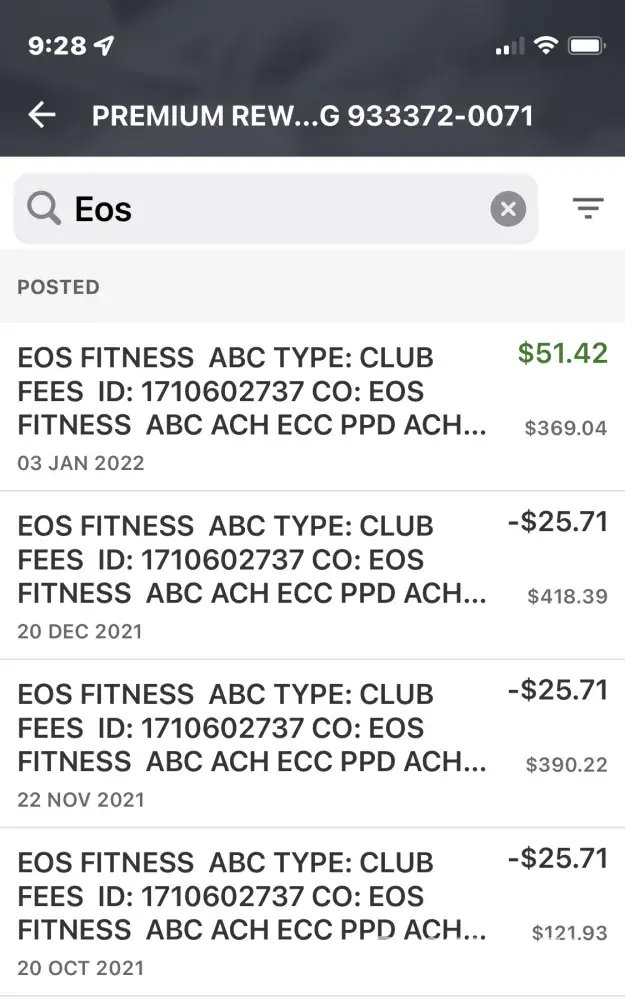 I cancelled my membership in Sep 2021. I moved away ON 9/29/2021 and cancelled before the move. Since then I have seen charges appear on my bank account several times. On 1/24 (today) I see another charge but this time EOS fitness overdrew my account since I did not have funds to cover it.