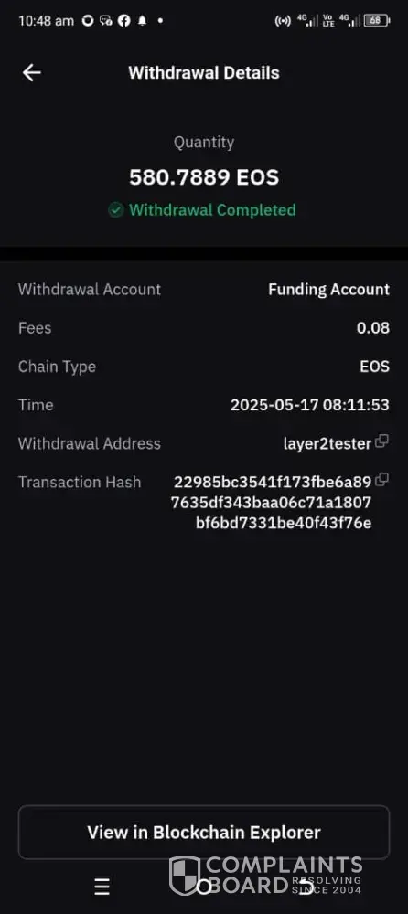 I made a withdrawal of eos since yesterday but uptil now I did not receive my eos.