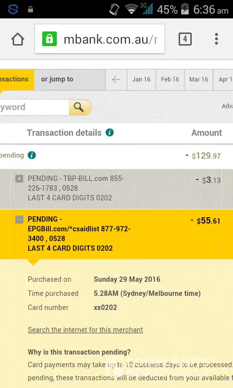 i have two payments that shows EPGBILL.COM on the bank statement, but I don't have any knowledge of such payments. Please investigate and let me know.