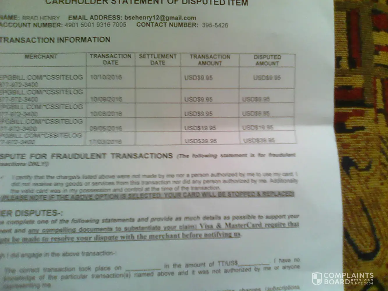 Hey there, I just got off the phone with Wells Fargo and they said that this can be processed as a fraudulent charge, and also soarked a lot more options. I too have been being hit with these charges since June of this year, and I also have the phone number of "" [protected] for EPGBILL.com market soci." I tried calling them today and they said that they do not have the information to the website that is charging me 39 bucks a month... which is complete ###. If these people are a third party participant then they would have to give the money collected from our cards, TO THAT PERSON(website).