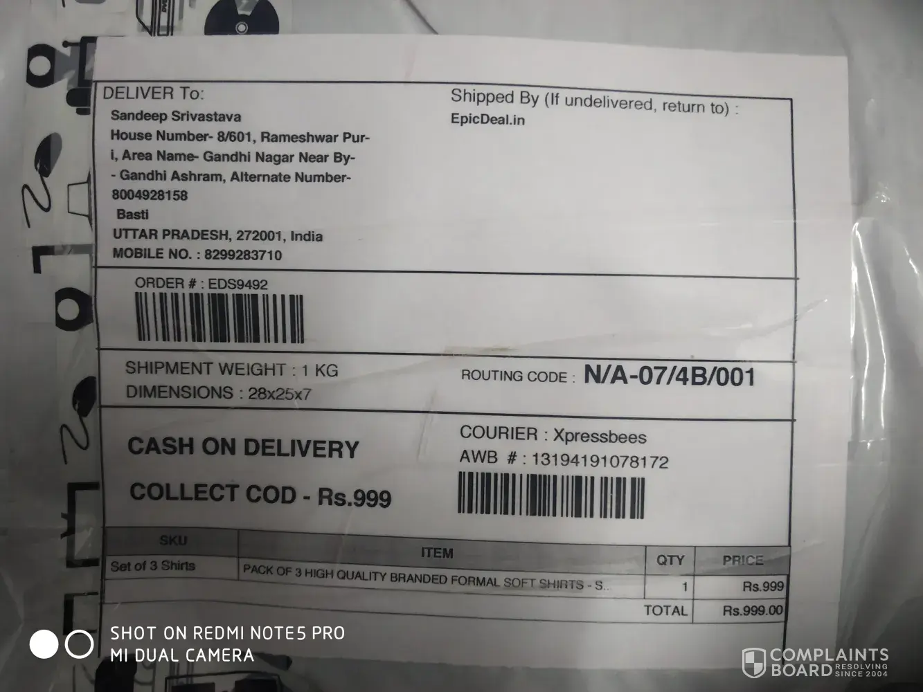 I have explained my grievance to the email address through which I was conveyed my order number EDS14781 but no response. That address is help@epicdeals.in