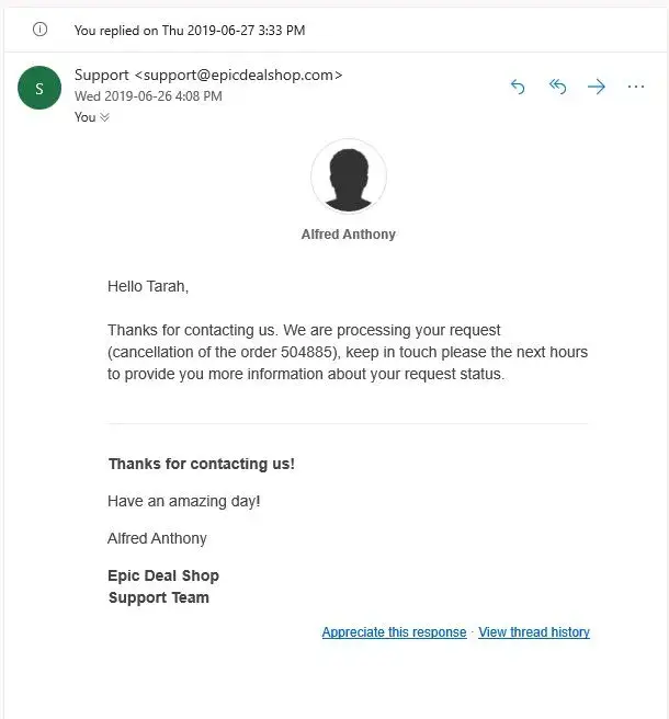 With only 0% of 0 complaints being resolved, Epic Deal Shop slow complaint resolution rate suggests poor service, lack of responsiveness, or a lack of helpfulness, causing frustration to users. It is obvious that the company has the lowest level of trust.