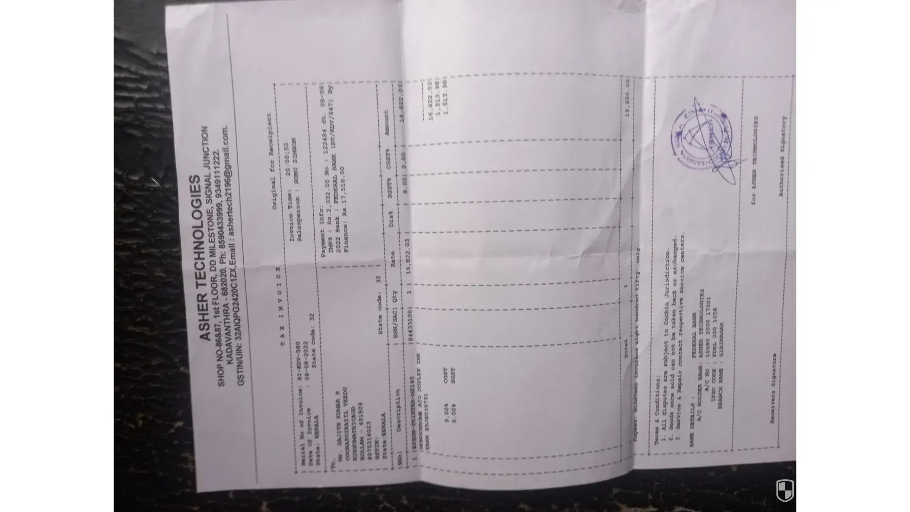 i brought epson 3 in 1 printer from IMC, Ernakulam, after succefully one year the printer has some problem Ie, it is not working properly sometimes it does not ON,