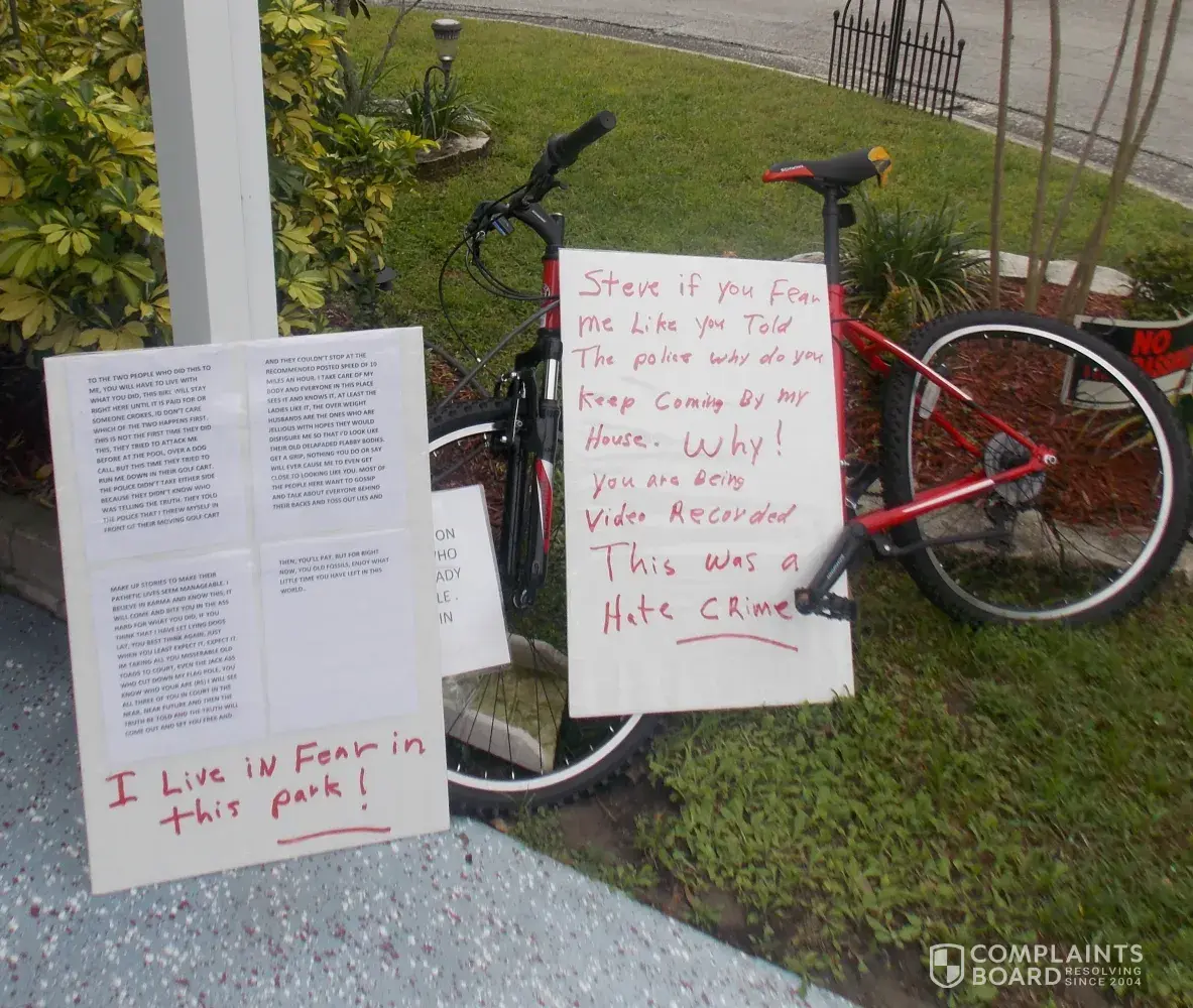 I am just curious as to how we have to have a background check with our lease agreement and someone comes up to my property (that I do not know and have no previous dealings with) and assaults me and a guest. He shoved me and hit my guest. All this was caught on surveillance. When lee country came out the deputy in formed me the guy that did this has to register with the state as a felon. After this happened my girlfriend tells me this is the same guy got out of his car and approached her car in the middle of the road. She was scared enough to call 911. Now I am having to worry about another assault from this guy, a resident within the community to my guest, my girlfriend or me at any time. The office was notified about this and sent a copy of the video. They did not call back and say anything. Not even acknowledge that they were able to see it. When I call to check they said they could do nothing. I constantly see lee county deputies in here. I constantly see kids riding carts and people cutting through the park. There has been a murder suicide. A resident was pistol whipped and then a short time later found shot in his golf cart. He died in route to the hospital. There have been drug overdoses here. Lee county knows this park very well. Why don't you advertise that to warn people before they buy. This park does not seem to offer what was promised when we purchased here. I sent a email through the website with no response. Now I was at my girlfriend moms house in the park and he came by and assaulted me again. Once again lee county was called. I was called by the state's attorneys office and after she saw the video filed charges on him. I have talked to tampa and was told they could not do anything. Another question is why did jennifer call my girlfriend and tell her that we needed to let it go or it would come back on us. She sent us a 7 day eviction notice september 19 2019 and did not even sign it or anything. In florida this is landlord harassment. At one time jennifer informed us that we could not use the amenities at the park although that's what we pay for with our rent. I have never had a problem at any function and my girlfriend only spoke at one hoa meeting. We requested to file a complaint and jennifer said no they could not get involved and all parties should get a eviction notice. What is up with this. I am standing under my carport and a felon resident comes down the street jumps out of his golf cart runs up yelling mother f$&@ this mother f$&@ that and jennifer and els is going to serve us a evection. With covid-19 just him coming over uninvited no mask getting in our face could kill one or more of us. Jason hernandez and leslie register were the ones I talked to in tampa.