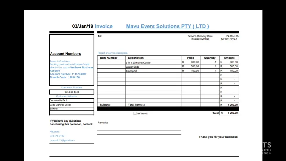 I refer to our recent tax invoice totalling an amount of R110 000, a copy of which is attached hereto.