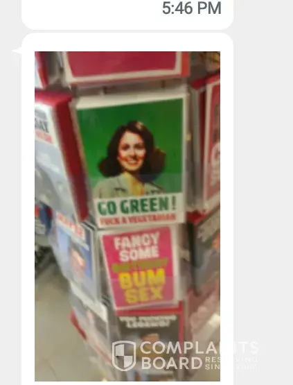 He felt each to his own. Not acceptable! Worst ever seen in any public place. Because there are two restaurants in the same area children have access to these if they go from the tim's to dairy queen, it is also degrading to woman.