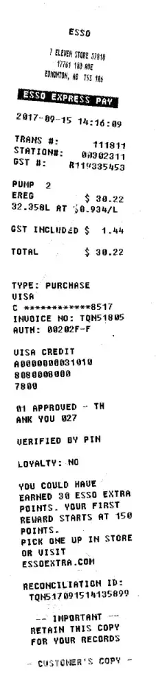 bought gasoline from esso station at 10 ave sainte crois st. Laurent Quebec