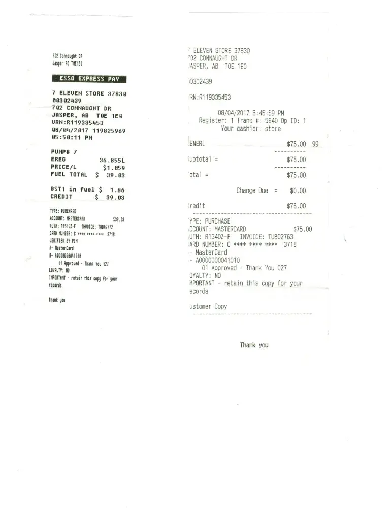 On Aug 4th, I went into the 7 Eleven store at 702 Connaught Drive, Jasper, AB T0E 1E0 Canada, for my credit card pre-authorization $75.00. Then I filled my gas tank at pump #7 filled $39.03. When I received my bank statement, both $75.00 and $39.03 were charged. I sent an email to Esso on Aug 26th. I got back an email on Sept 6th from a Customer Care Specialist saying I would be contacted by phone direct. Not getting any call and I sent 2 more emails to claim about the status. Again no response whatsoever since then.