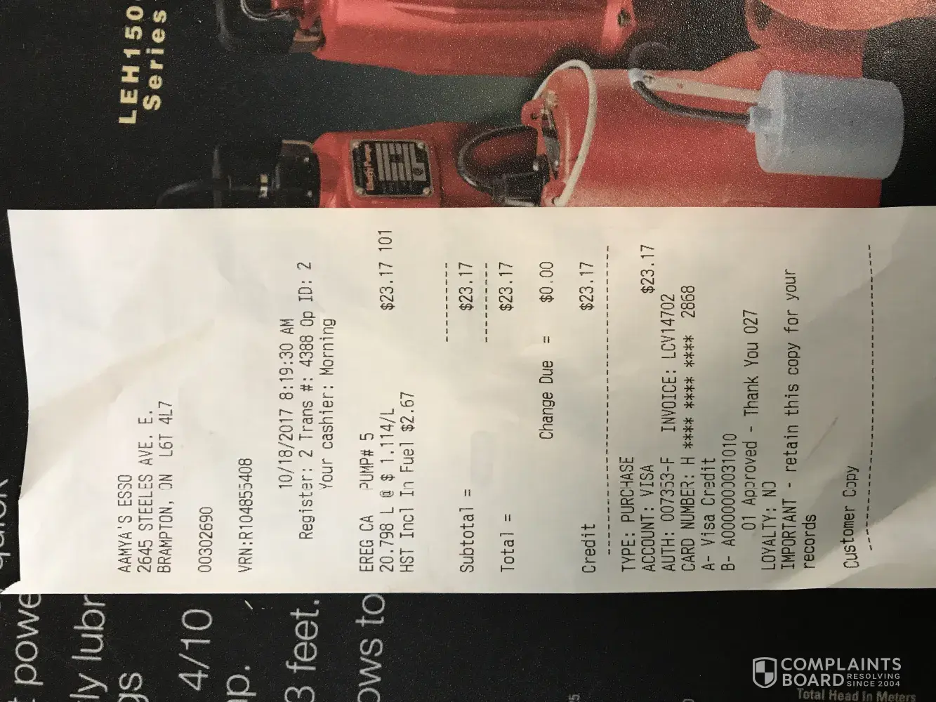 I went to Esso gas station last night at Dorval and Speers in Oakville Ontario.