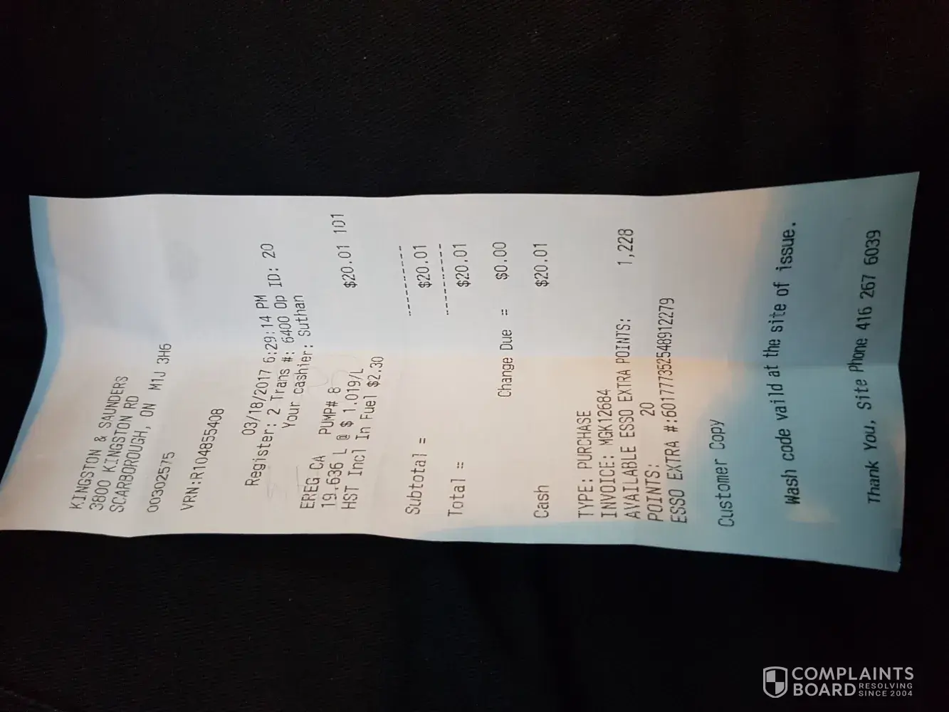 I put gas at the esso at scarborough golf club rd. And kingston rd.