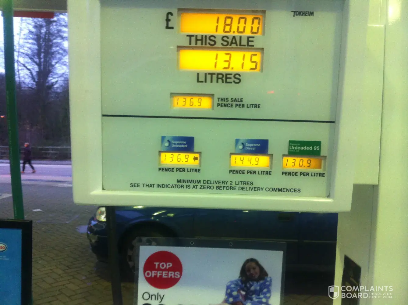 Either way, I will not be trusting Esso again and certainly not the Moreton on Marsh garage again. Esso have a duty to warn potential customers, and they have a strict obligation to check up on complaints and false calibration at this garage.