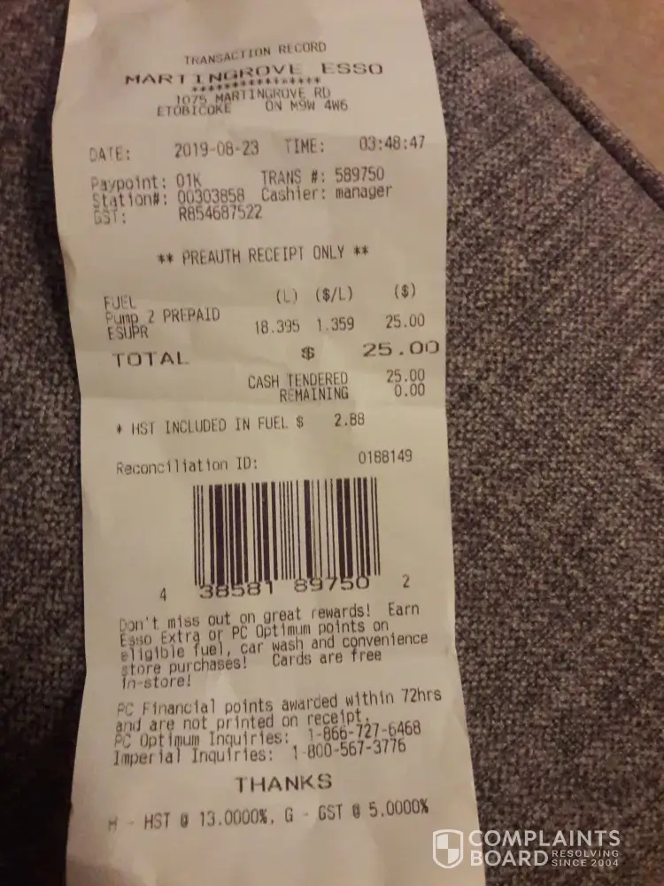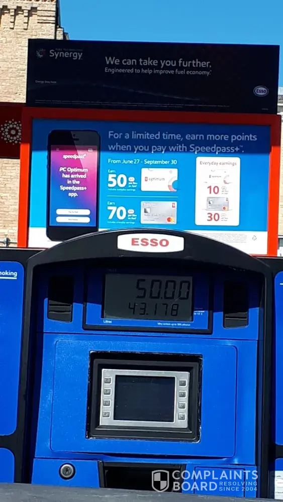 Hello, I stopped to buy gas at the 565 Goderich St Port Elgin. Time 3:45 PM on Sunday August 11th 2019. I had downloaded the new app to get the 5x points on optimum card and my Express esso card on my phone. So I picked the pump and proceeded to pay. It said we regret to inform you that it's not working. So 8 went into the store to ask why. Employee...