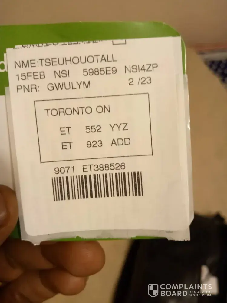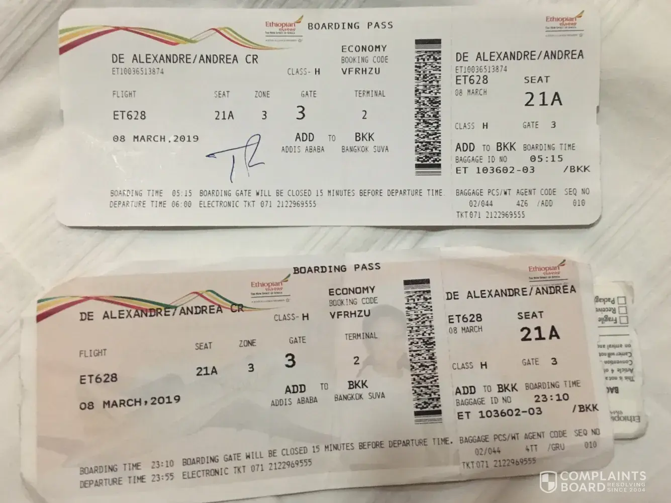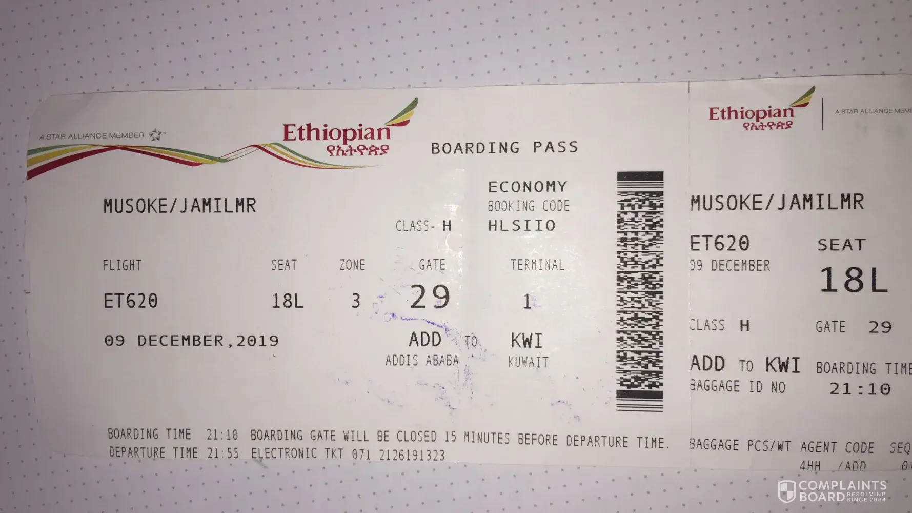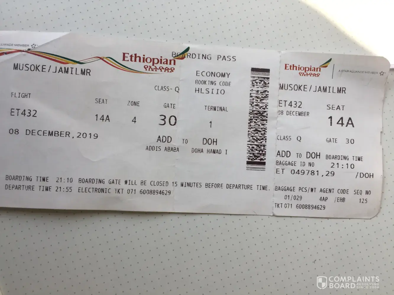 1 = failed to contact Ethiopian airlines to get the boarding passes ready