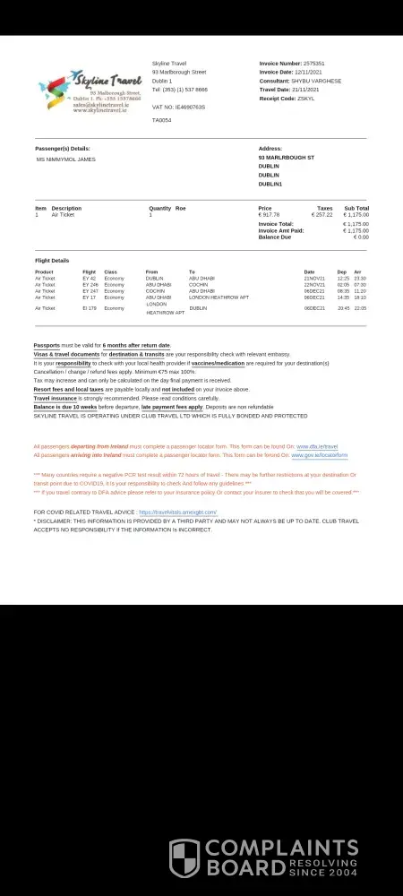 As I'm sure you can imagine, this was extremely stressful and upsetting for me. I had travelled to India to see my parents for the first time in 2 years, at short notice as my father had become ill. I left my husband and 2 young children at home in Ireland, and was anxious to get back to them after being away for 2 weeks. I also had work commitments in Ireland, having to attend work as a nurse in the HSE on Tuesday the 7th of December. The staff in Kochin were not helpful at all, and clearly weren't aware of the current travel rules. This was very distressing and having to book another ticket at such short notice was expensive and very inconvenient. As previously stated, I travelled home with Emirates with no problems using just my IRP card in the UK.