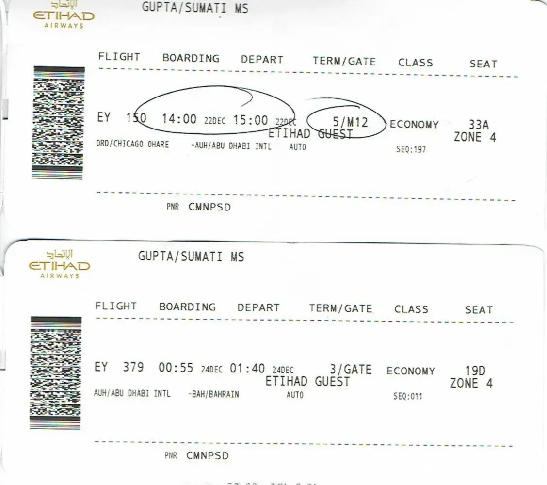 I had booked a return ticket for her Bah - Ord - Bah. Please see the attachment. She had initiated the ticket and it is the return journey I am complaining about. (Chicago to Bahrain).