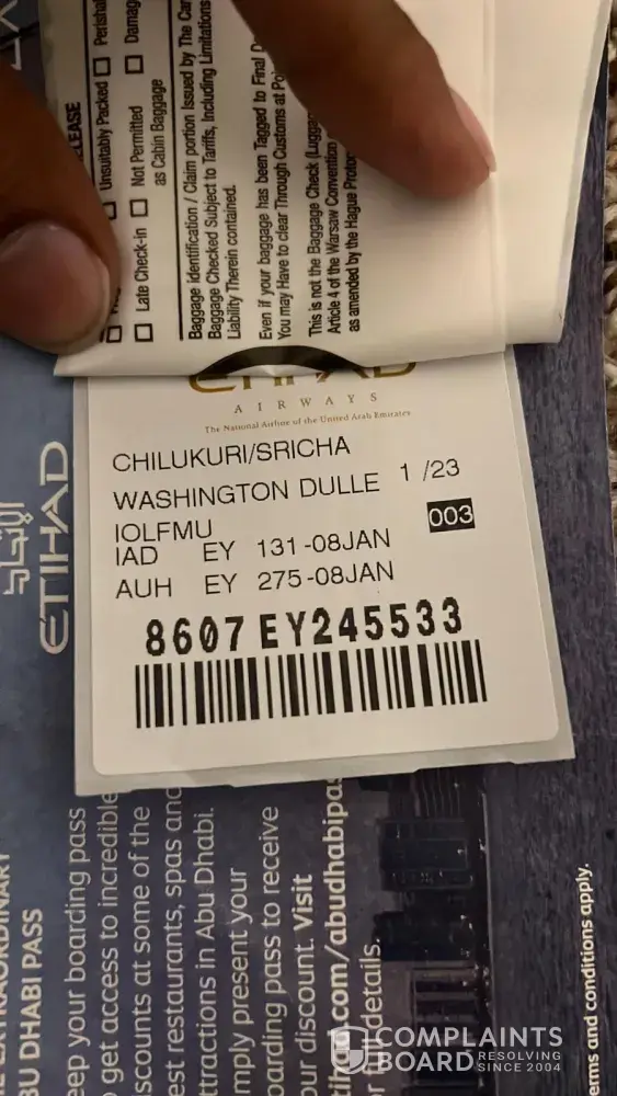 Etihad Airways Baggage missing for 13 days and irresponsible customer service