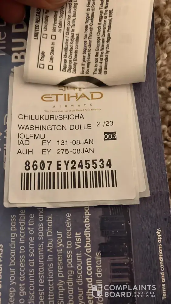 2. Called Etihad customer service and raised a baggage claim on January 12, 2022, again spoke to customer service, received an email response on my claim on January 14, I provided the clarification on the same day. Since then we sent many follow ups, called and spoke to customer service many times, each time they say, escalated and will get the luggage in 2 days. After that no update.
