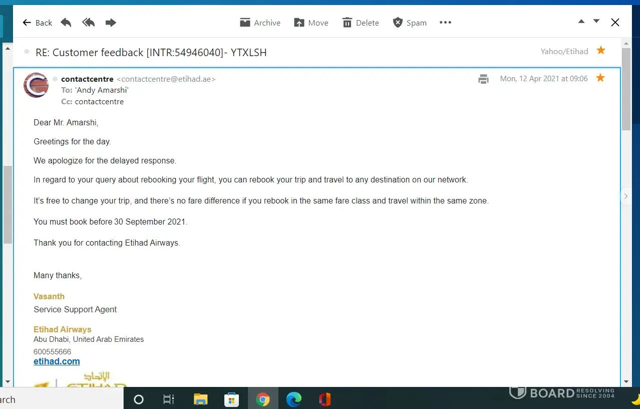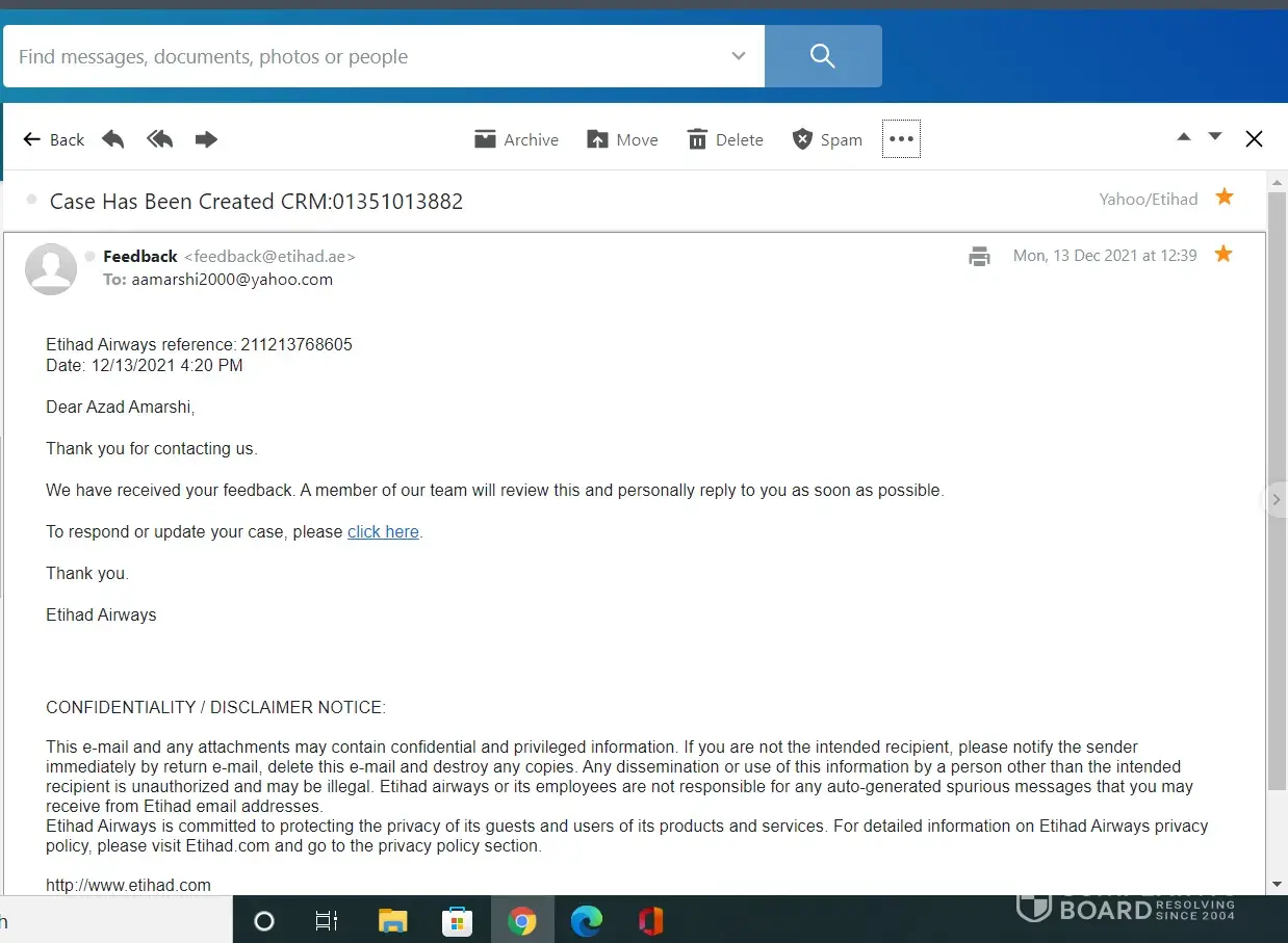 20 Dec, 2021: Etihad (Salman) requests field team again to look into the matter