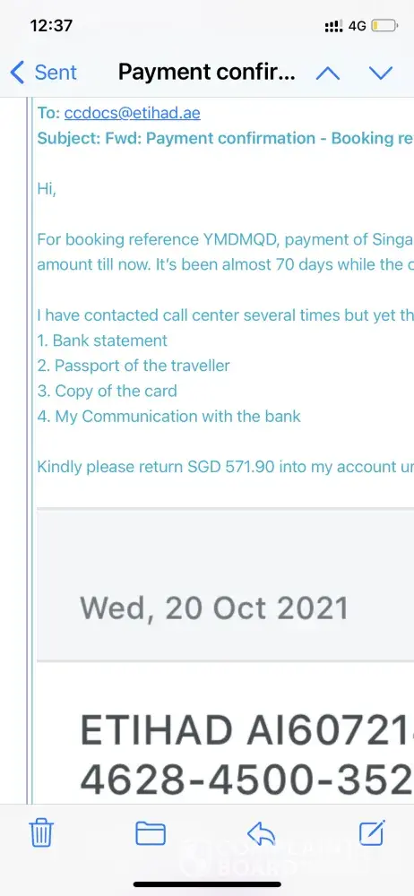 Etihad Airways Refund payment not received