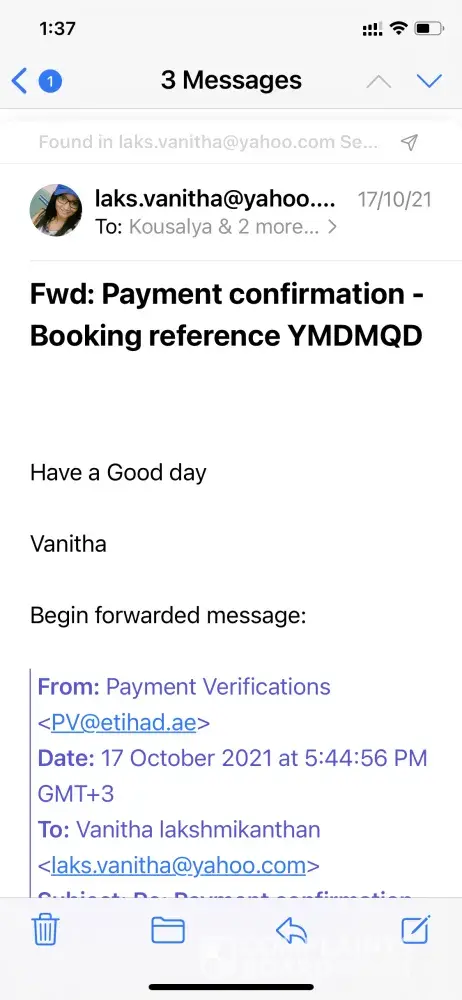 Etihad Airways Payment wrongly taken