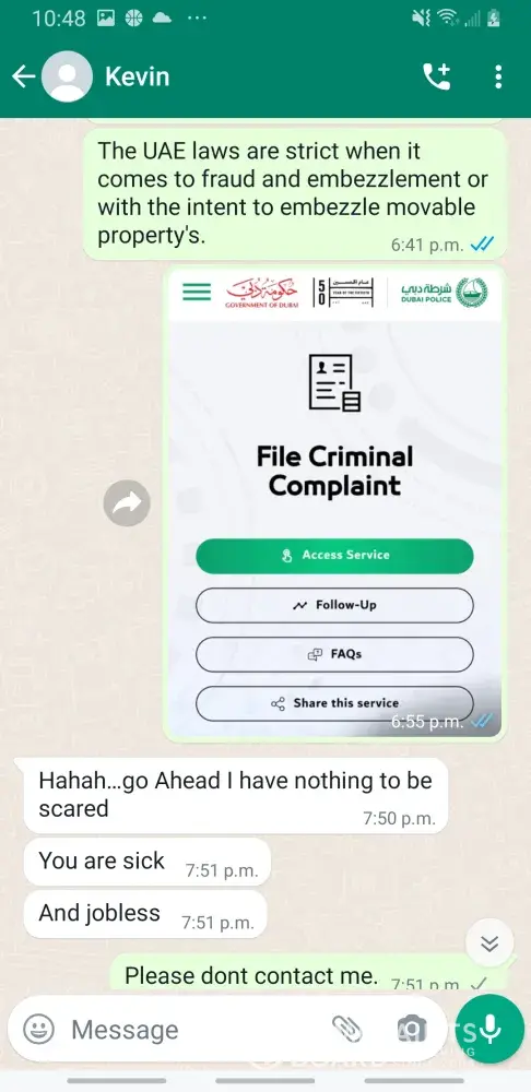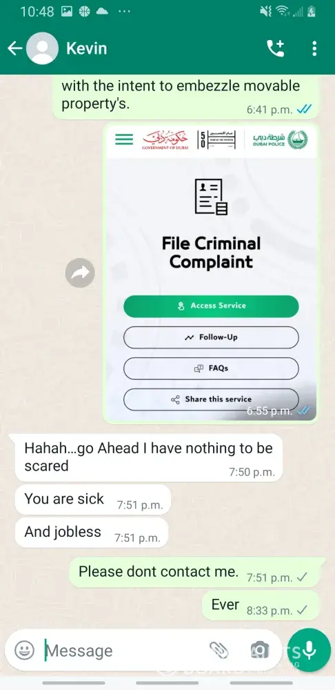 Would you be interested in filing a criminal case against him with the dubai police. As well as Ethiad Airways.