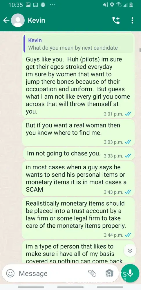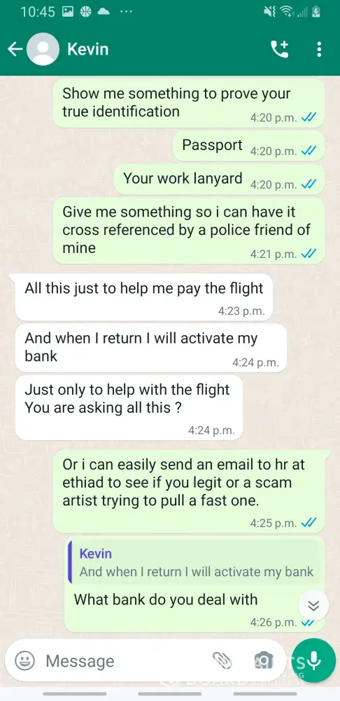 Kevin becker pilot at etihad.. scamer..his on fb dating site.. please beware this guy sent me lots of picture with his pilot uniform