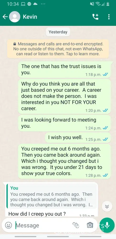 This was not resolved but Kevin Becker did make threats for the complaint to be pulled down and using intimidation by posting nude pictures of his victim on facebook. Please have this dealt with ASAP.
