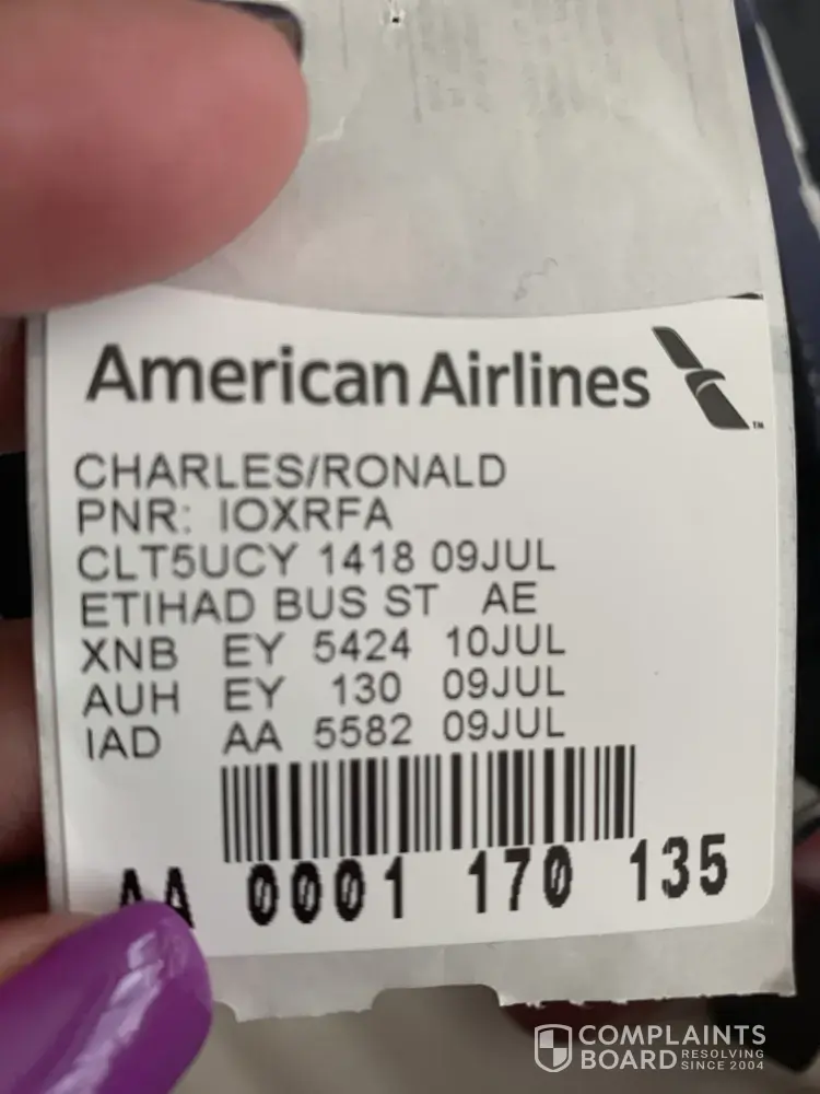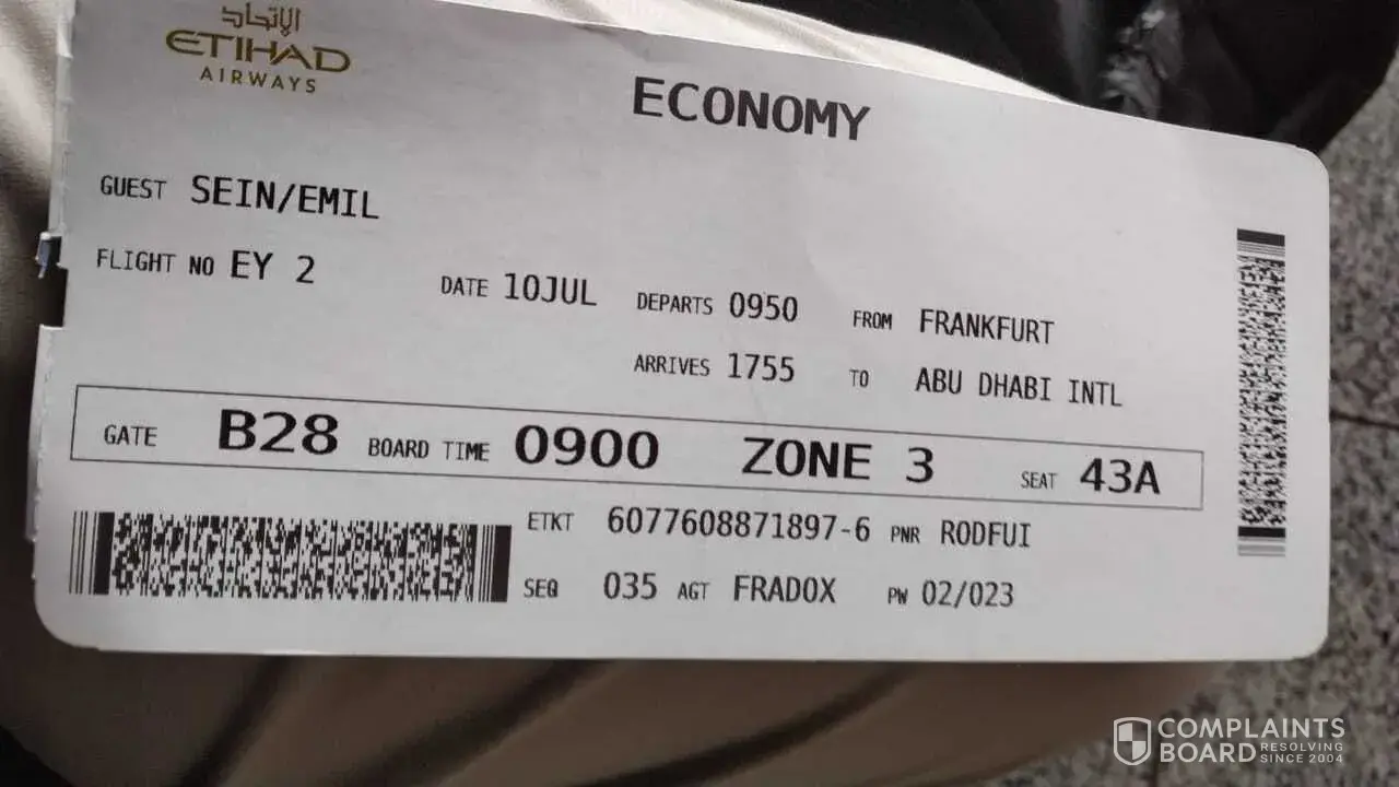 Subject: Etihad Airways- Reference [protected] CRM:0193118
