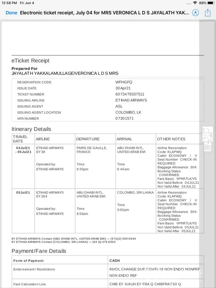I Veronica Letitia De Silva pass port number N 3027551 came to Paris from sri lankais on 9 th February 2020 with the COViD 19 situation I was unable to fly fly back to Sri Lanka as planed.