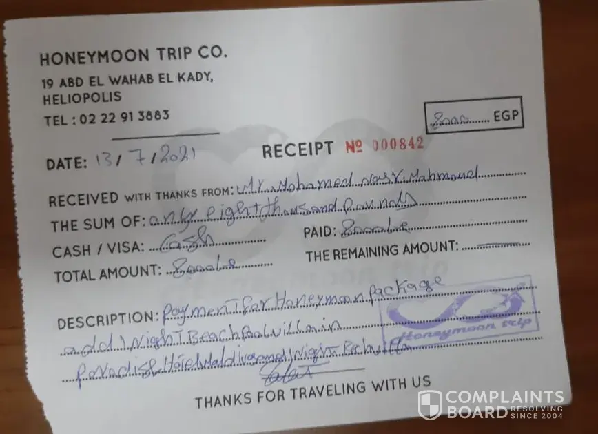 I was supposed to arrive maldives on 14/7/2021 and leave on 19/7/2021 but due to your technical problem and flight cancellation. I lost my 1st night in maldives which i already paid it before with the honeymoon trip travel agency and make a new booking for private pool villa on 15/7/2021 and add one more night in beach villa on 19/7/2021 as shown in attached travel agency's receipt ( this happens because of your new flight booking that your stuff in cairo international airport told us it's the only solution we can offer, the new departure date will be on 15/7/2021 ).