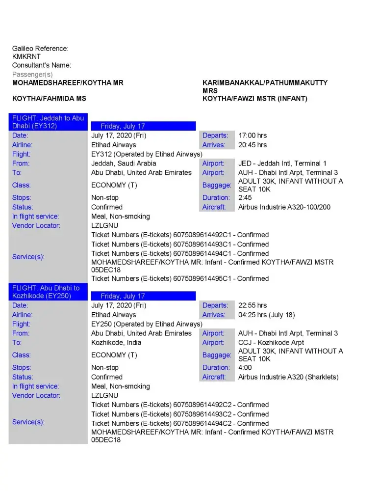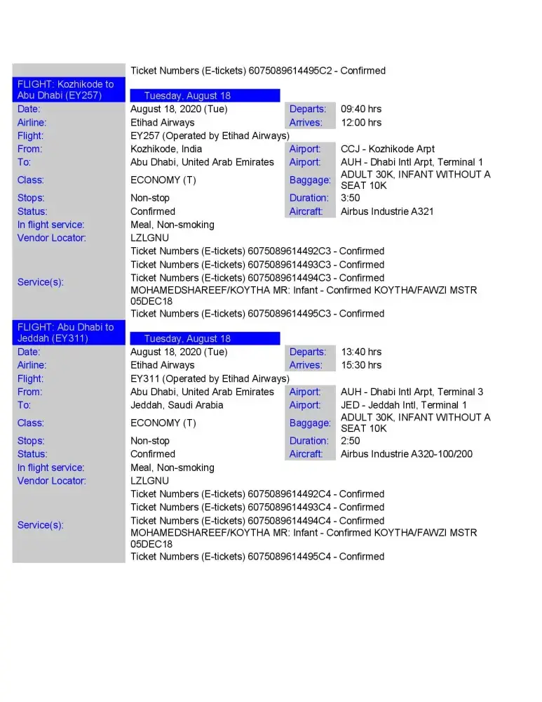 I have purchased 4 Air tickets (Jeddah -Abu Dhabi- Kozhikode Kozhikode-Abu Dhabi Jeddah, as below details. Unfortunately, we could not travel due to cancellation of flights for Covid-19 Pandemic. As expected we cannot travel even this year also, so we have no way except to refund the ticket amount.