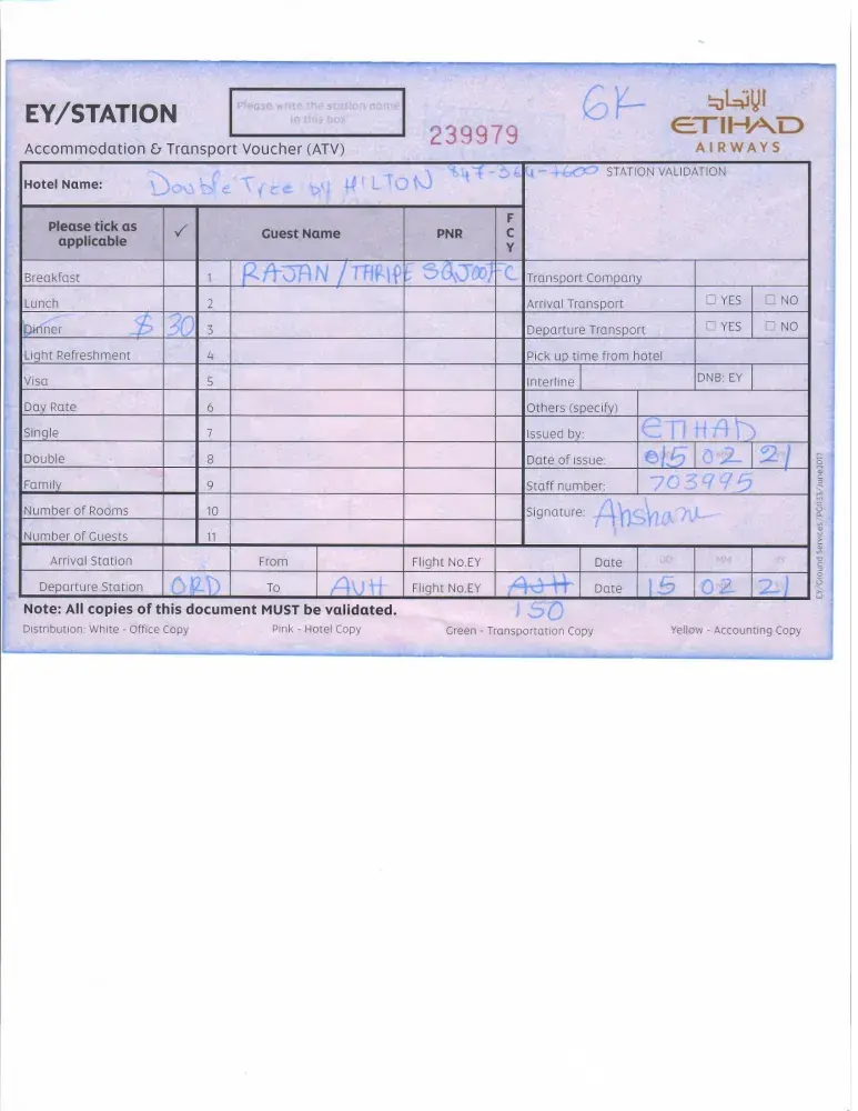 They gave us voucher as attached and told us take uber and bring the bill next day for reimbursements. Due to snow no taxis were available finally 3 passengers from business class took a taxi to Double Tree by Hilton. After few minutes cheking the reservation as per voucher front desk advised the booking is not in that hotel it is another double tree by hilton. By the time no taxi was available and all of us were tired so we decided to stay there and bring the bill to Etihad checkin counter next day. We did same and the person of Etihad told us to apply on line and it will be reimbursed. I have been trying to contact local office to get the website since i could not do it.
