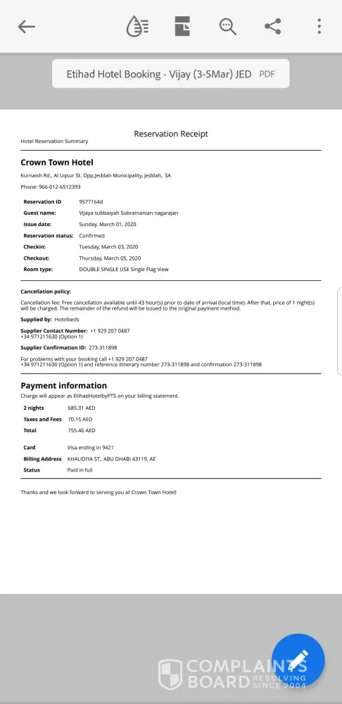 I booked a hotel from etihad guest ( March 3 to March 5) website and when i reached saudi arabia, the hotel reception has told that they haven't received any booking confirmation from Etihad. When I tried to contact Etihad call center, I was informed that they don't have access to look in to my bookings. When i sent a mail to Etihad i got reply after 1.5 days.