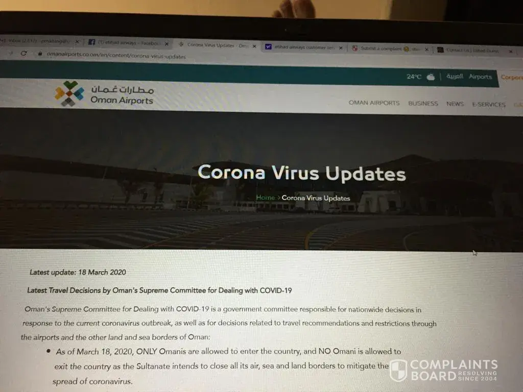 However due to COVID 19, restrictions were applied at Muscat restricting non citizens from entering Muscat effective 18th March 2020. The screen shot is as below