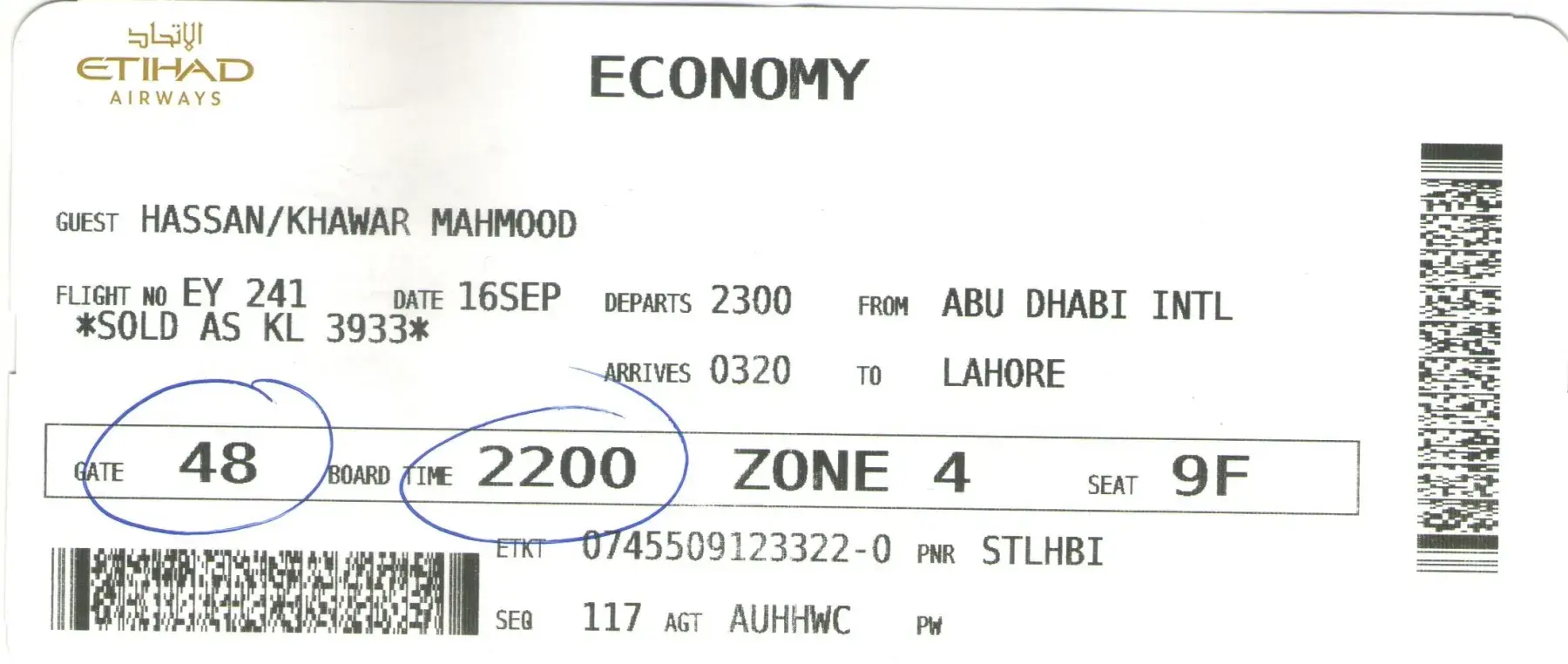I traveled from Abu Dhabi to Lahore on Sept 16, 2019 via Etihad flight 241.[Copy of Boarding Pass attached].