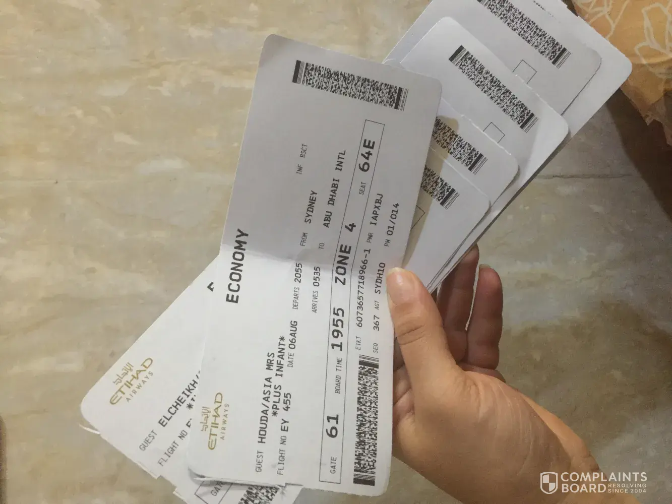 Our flight number EY 455 from Sydney to Abu Dhabi on the 6th of August 2019.