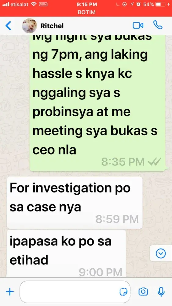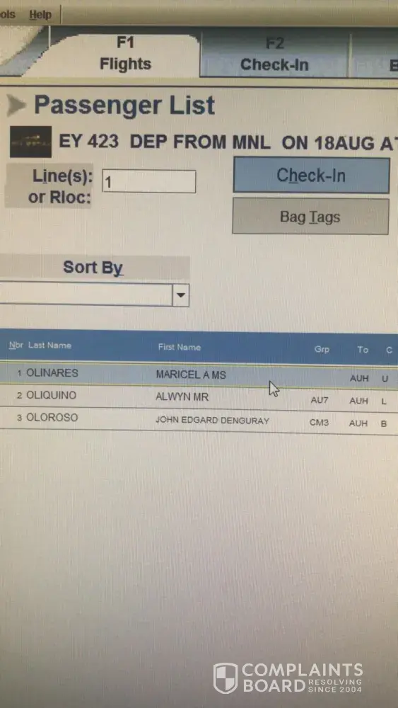 I would like to complain about my flight on August 18, 1:00am, EY 421. Manila to Abu Dhabi.