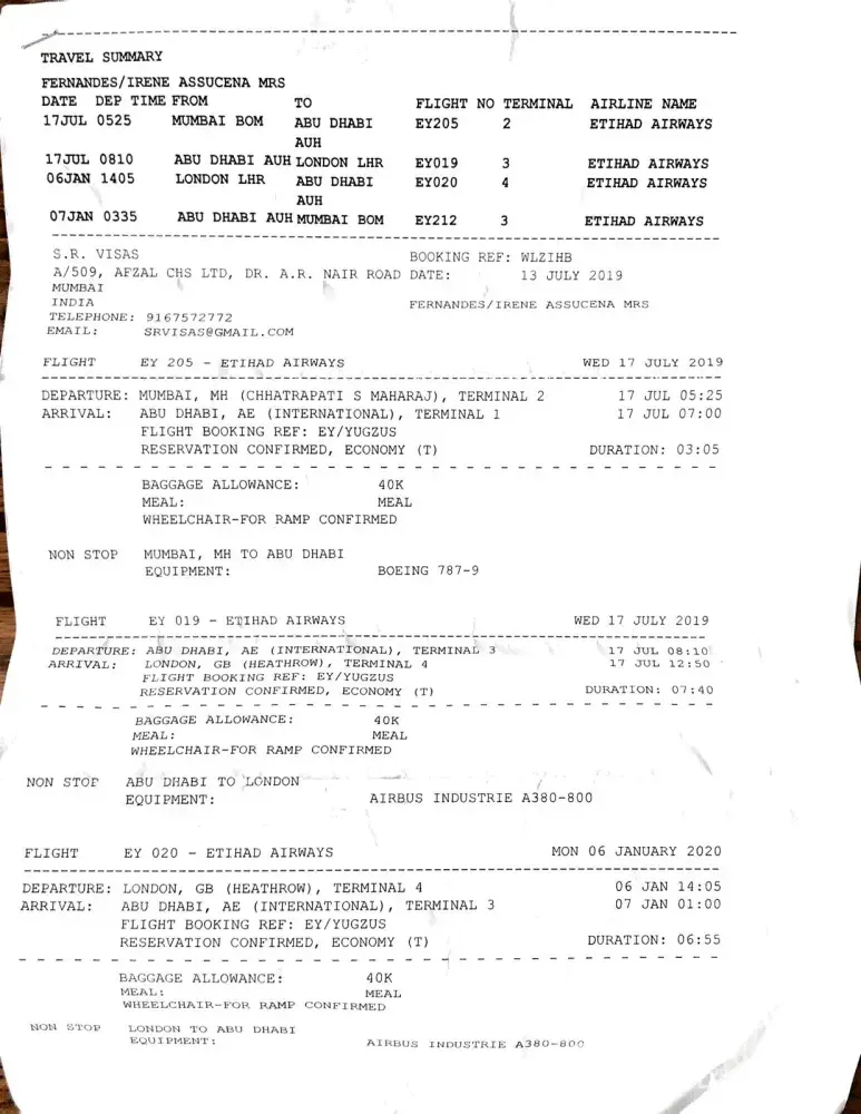 Etihad flight - Mumbai - Abu Dhabi - London heathrow Airport.