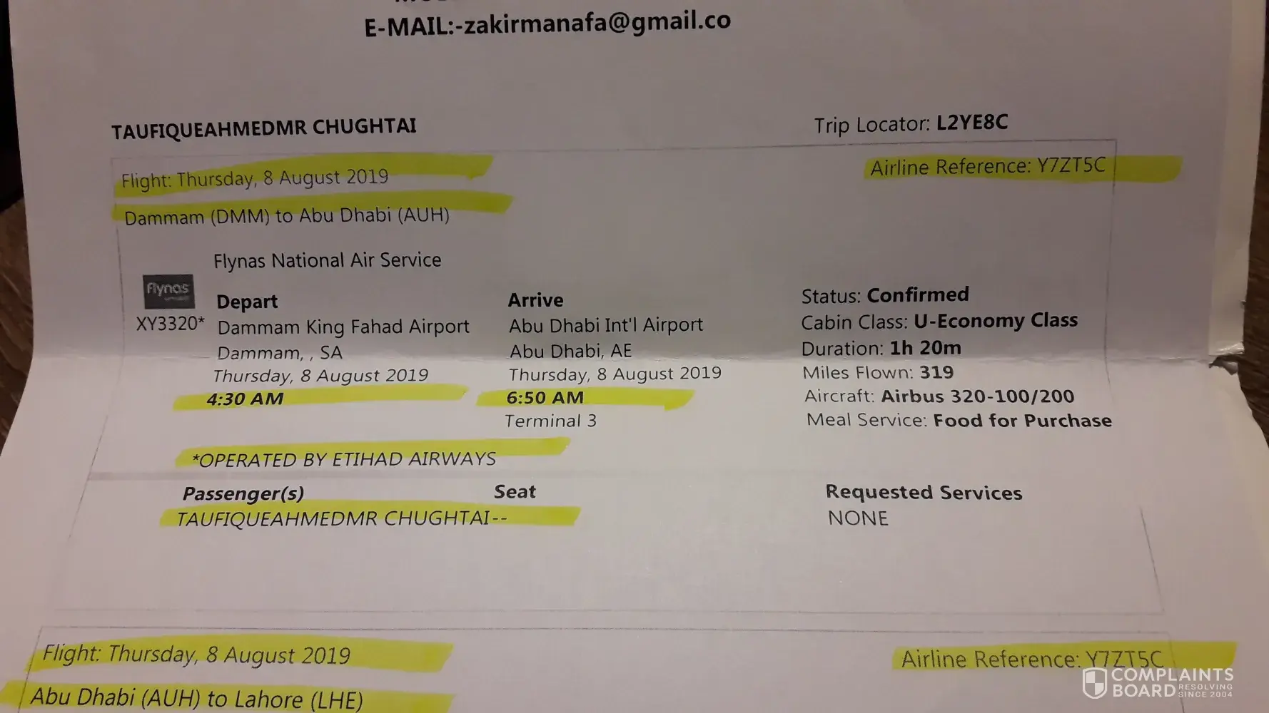 Boarding Denied at Airport stating Booking details not available in System. Contact Flynas Supervisior, Flynas Directed to Etihad, Etihad Office at Riyadh Airport - No Help. Called Customer Care - Will Get back to you in 3 Days. No Alternative arrangement done in another flight same day at 10 PM. Unable to travel to reach my family (uncle's Funeral). 3 Years now still no Resolution. Height's of IGNORANCE. Worndering if UAE Government in colluion with Etihad Airways.