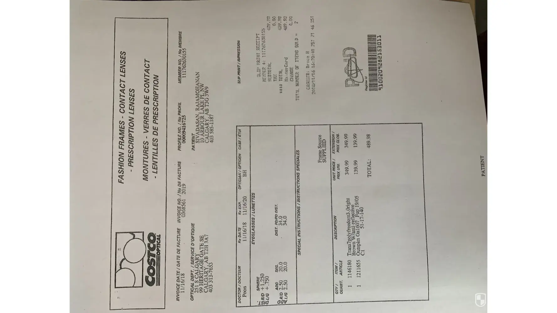 I am very much upset with this settlement and the way my claim is handled. Optical invoice & baggage purchase invoice already submitted.